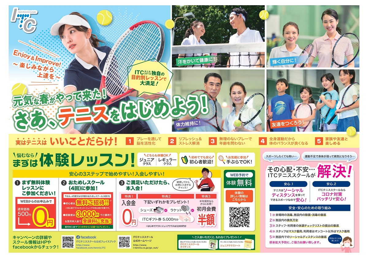 ITC六甲アイランドテニススクールでは、スクール生を募集しています!