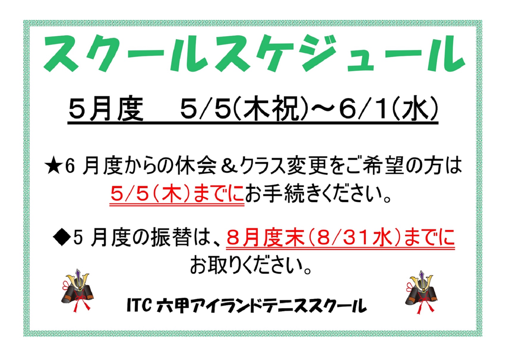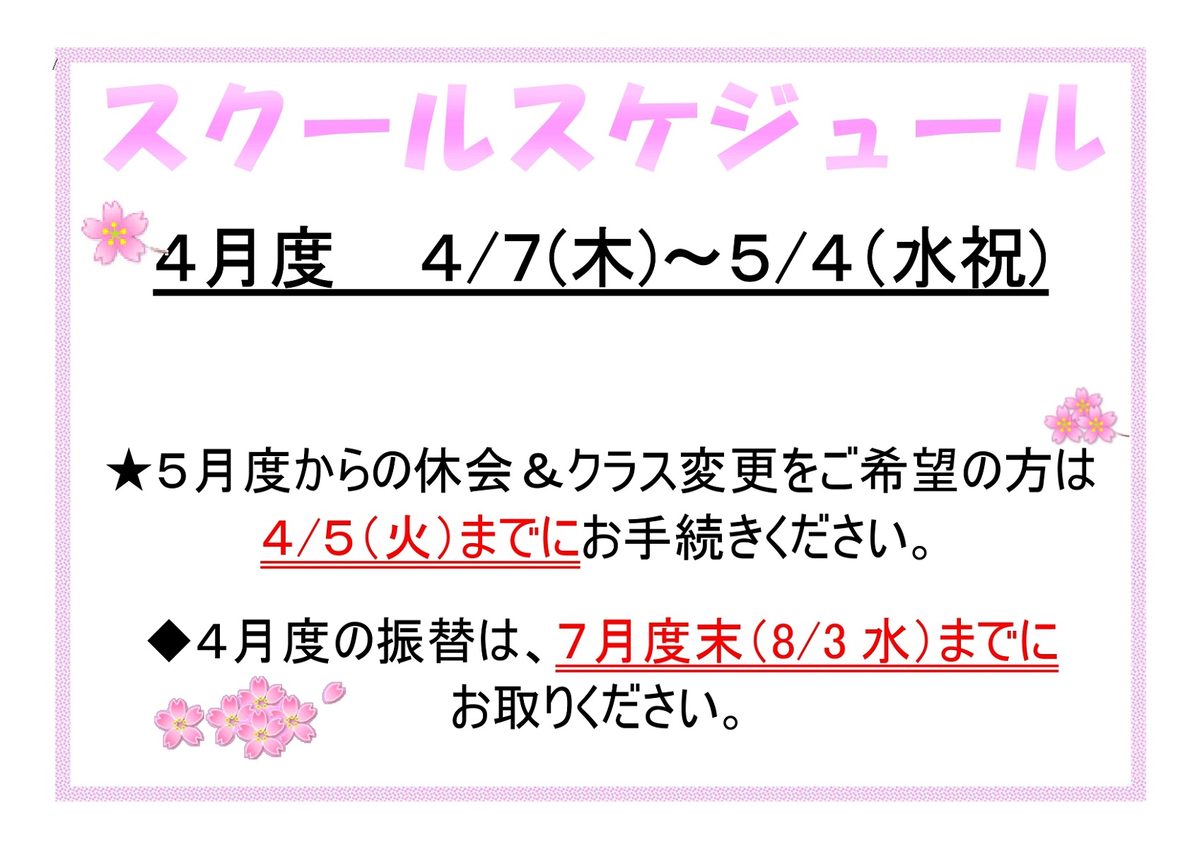 3月度スクールに関してのお知らせです!