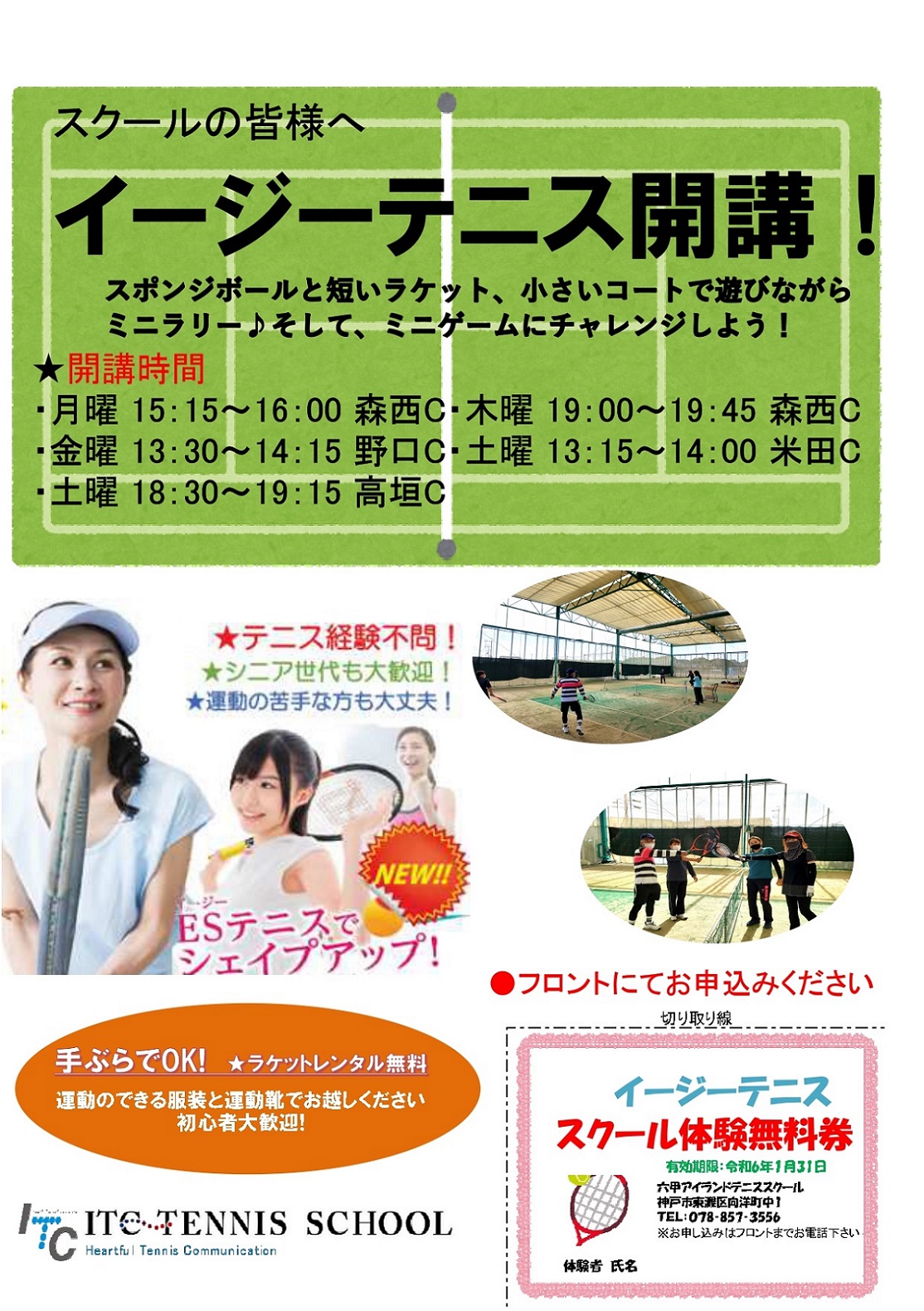 現在、六甲アイランドテニススクールではイージーテニスの体験を大募集中です!