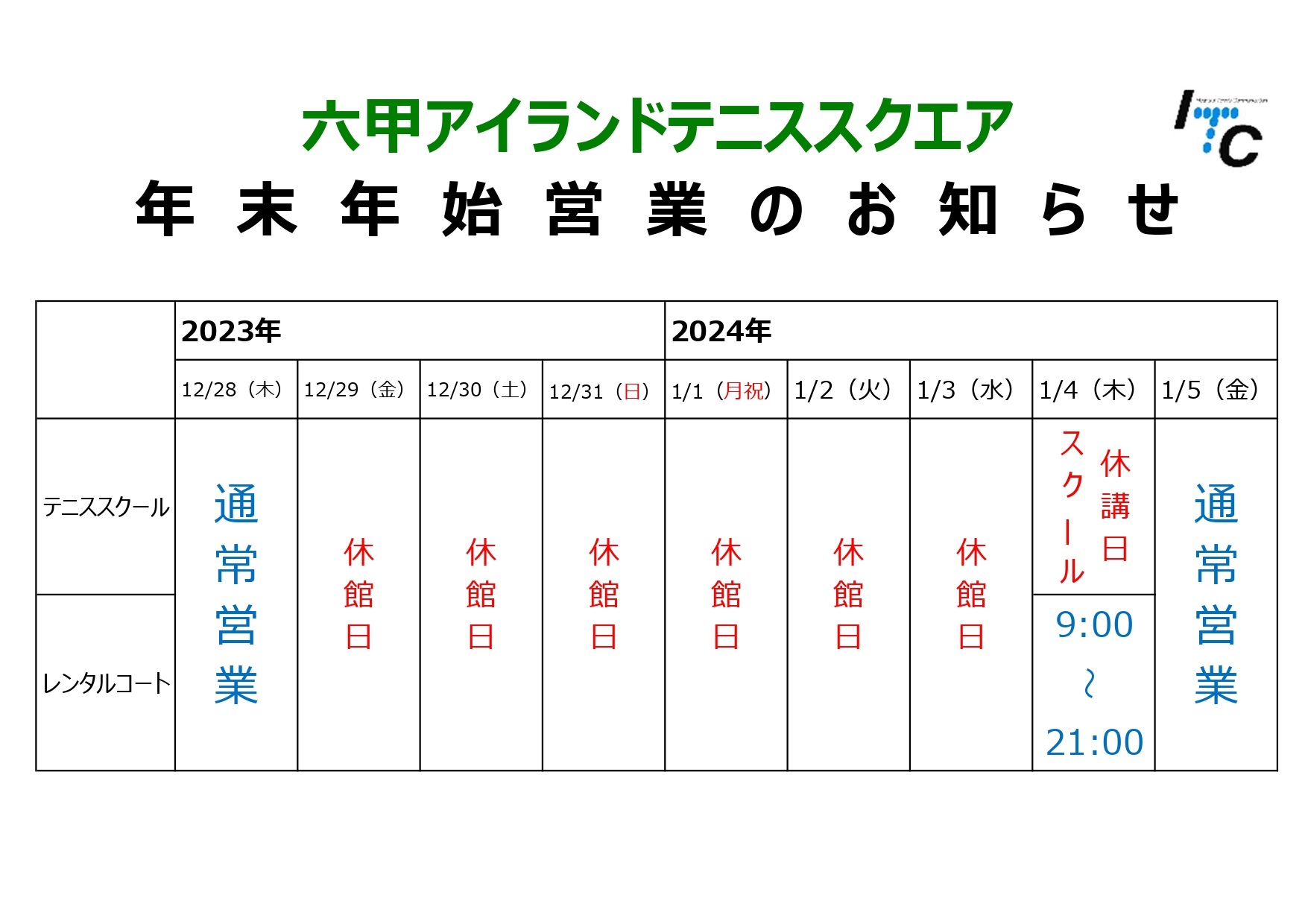 年末年始の営業に関してです!