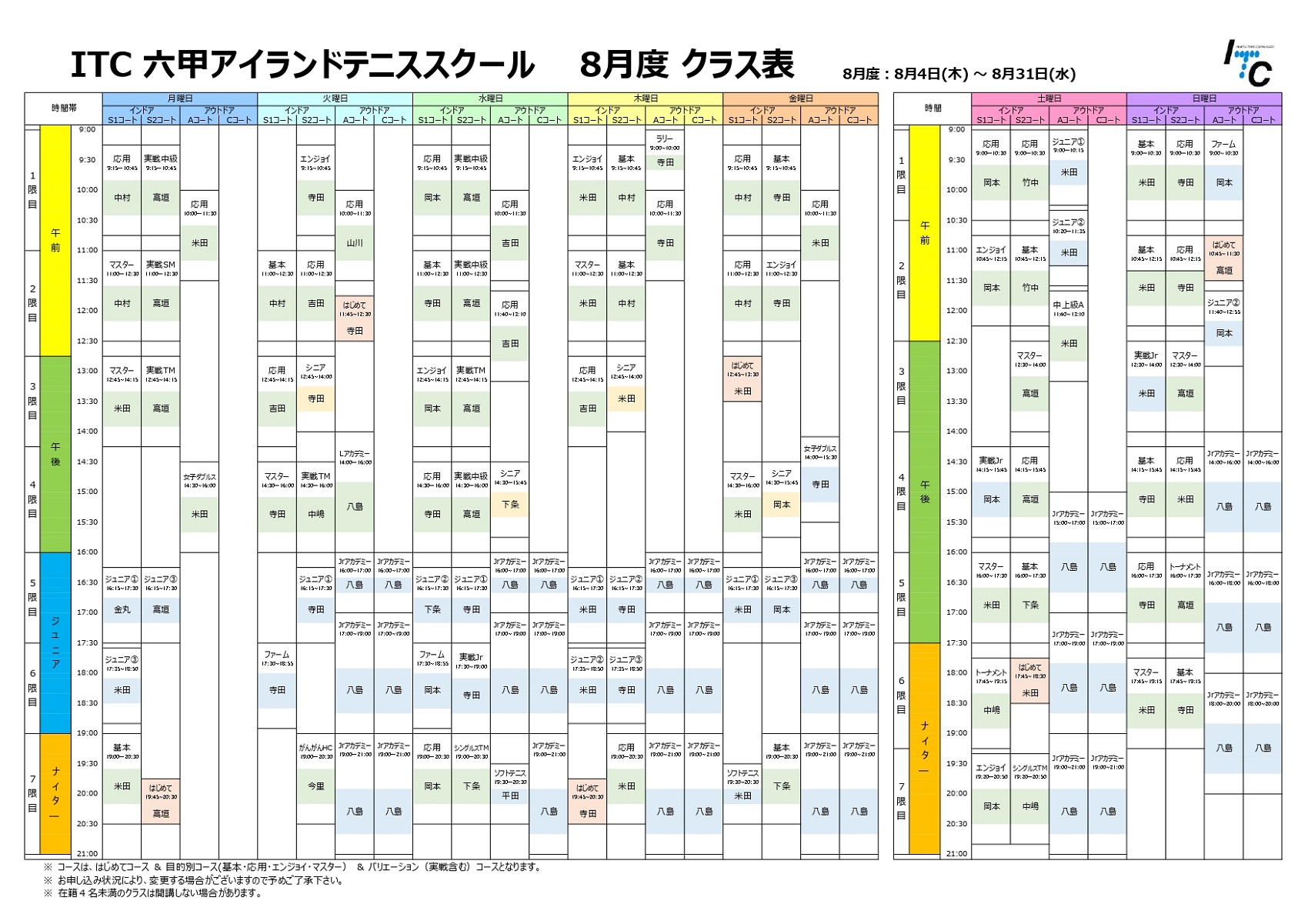 ※スクール中に体調が悪くなり個人的に終了する場合も上記を適用させて頂きます