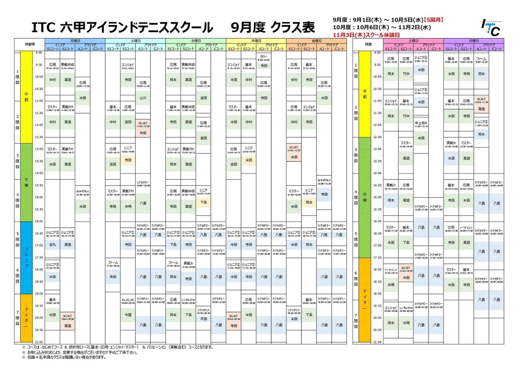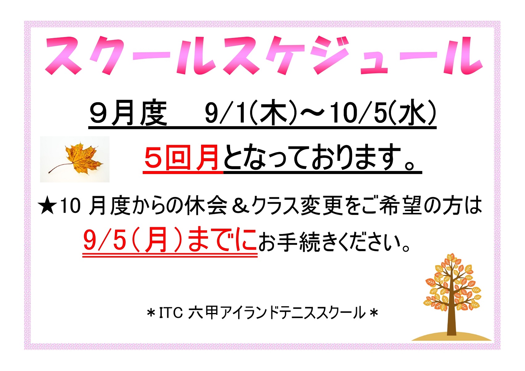 いつも当テニススクール及び当施設をご利用いただき、誠にありがとうございます。