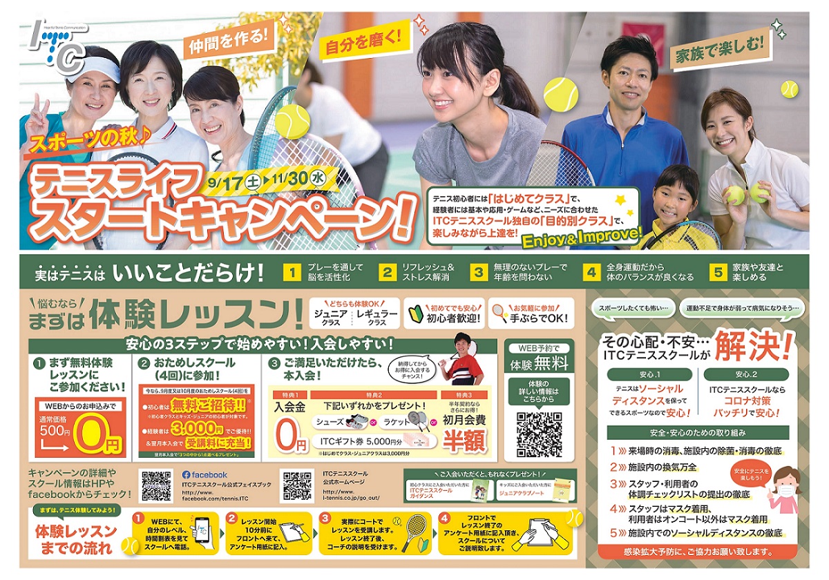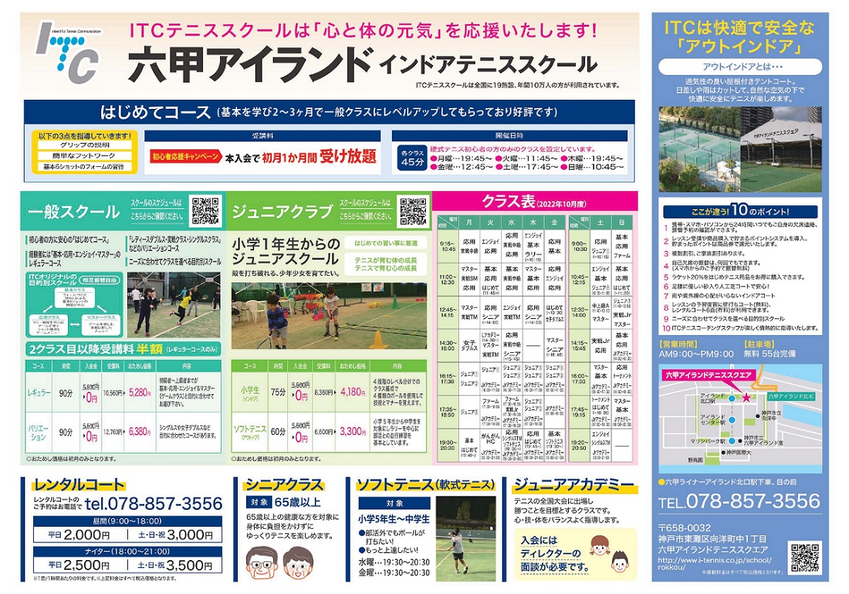 ITC六甲アイランドテニススクールでは、スクール生を募集しています!
