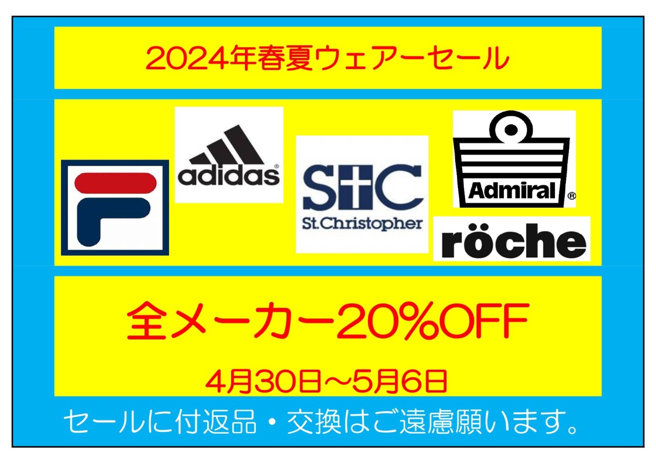 本日よりウェアー各種1500~4500円のセールを5月17日まで開催します