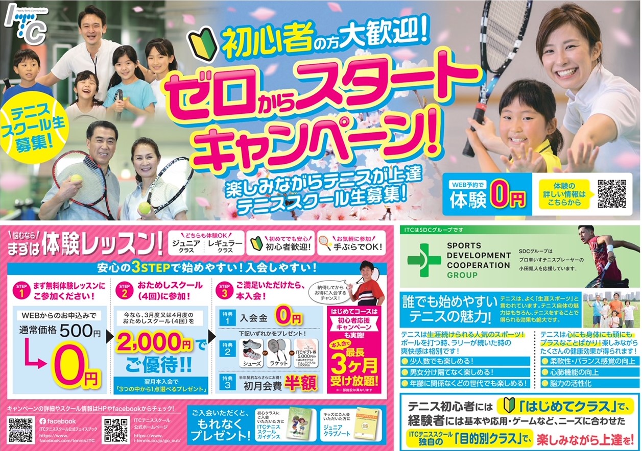 現在、六甲アイランドテニススクールでは春の入会キャンペーンを実施しております!
