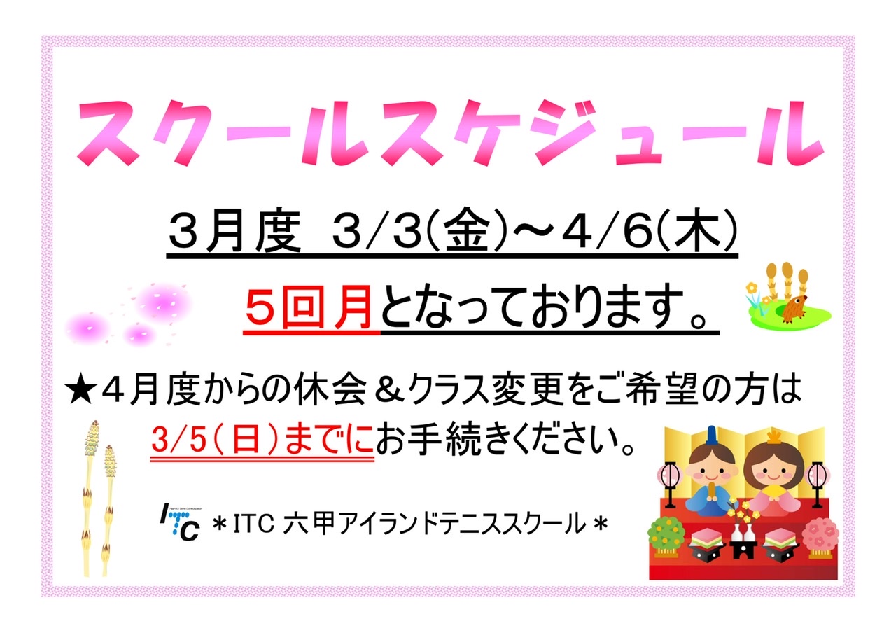 現在、六甲アイランドテニススクールでは、春の入会キャンペーン実施中です