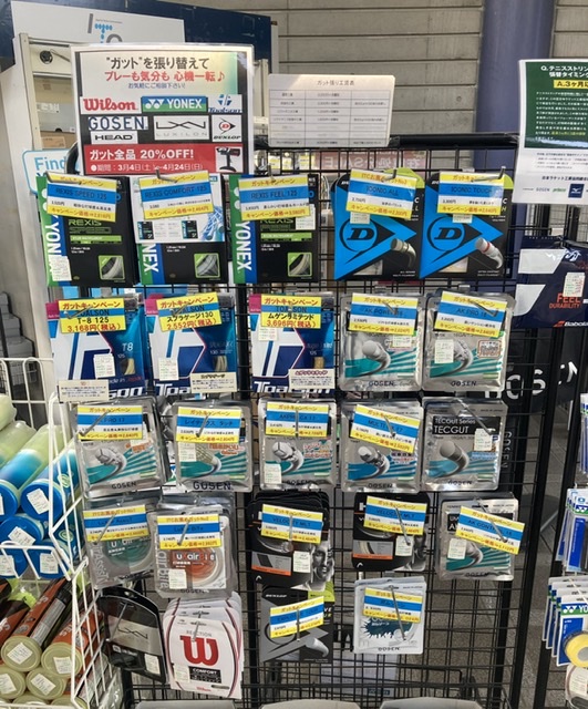 店頭に並ぶガットが20%OFF‼︎