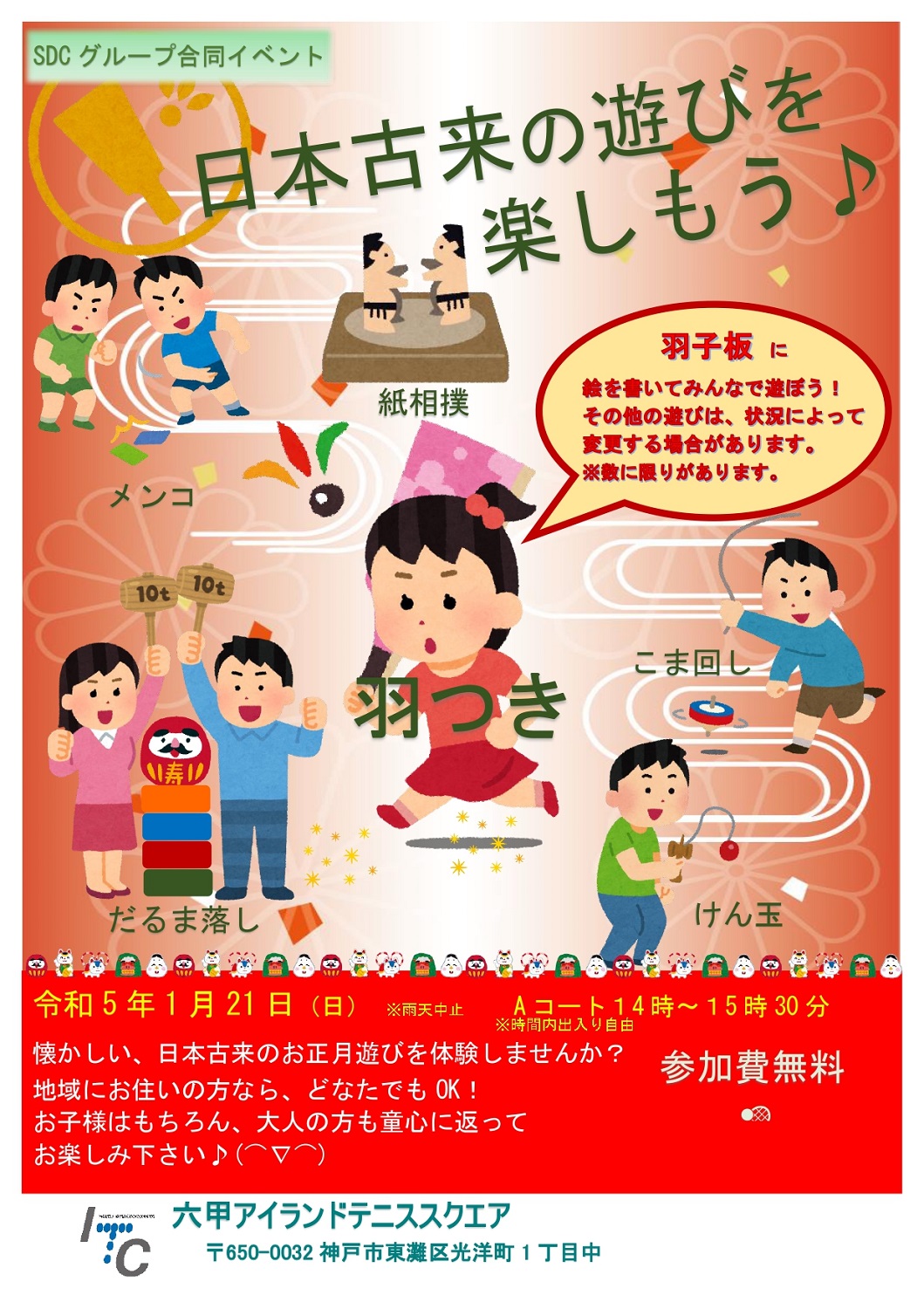 また、1月には新春子供イベントも開催予定です!羽子板作りや、こま回しなどありますので、親子でどしどしご参加ください!
