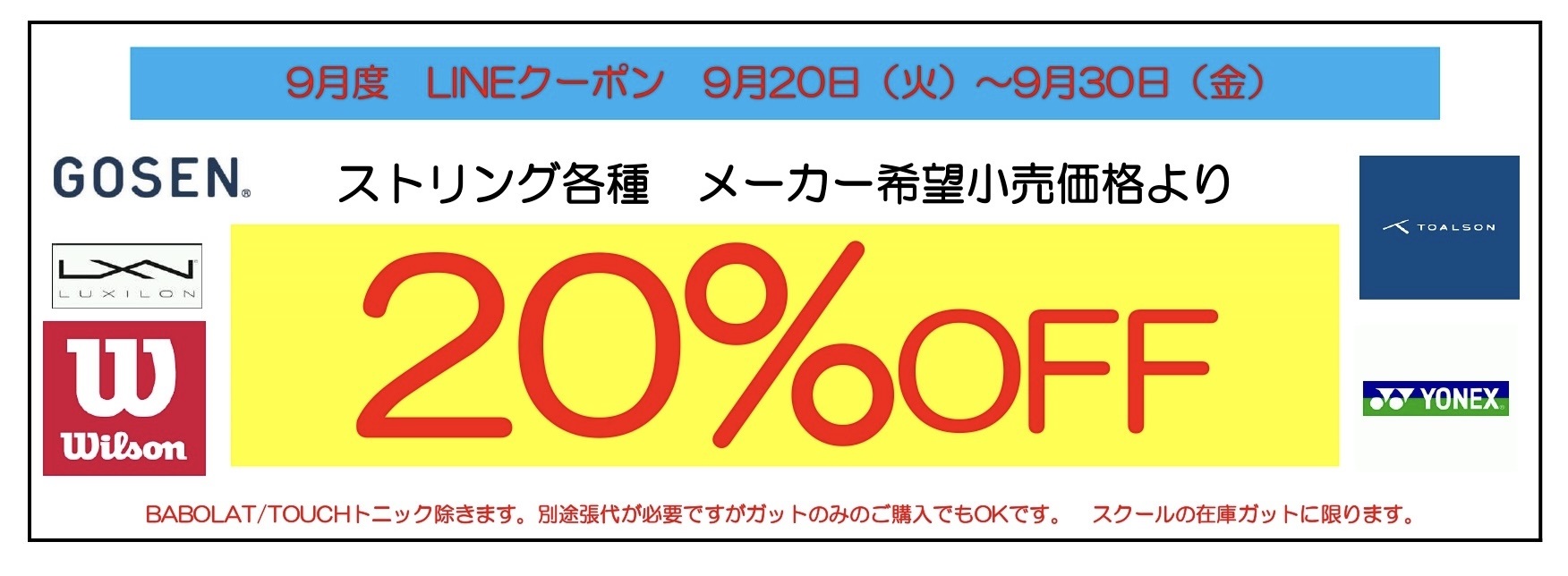 9月度LINEクーポン配信!
