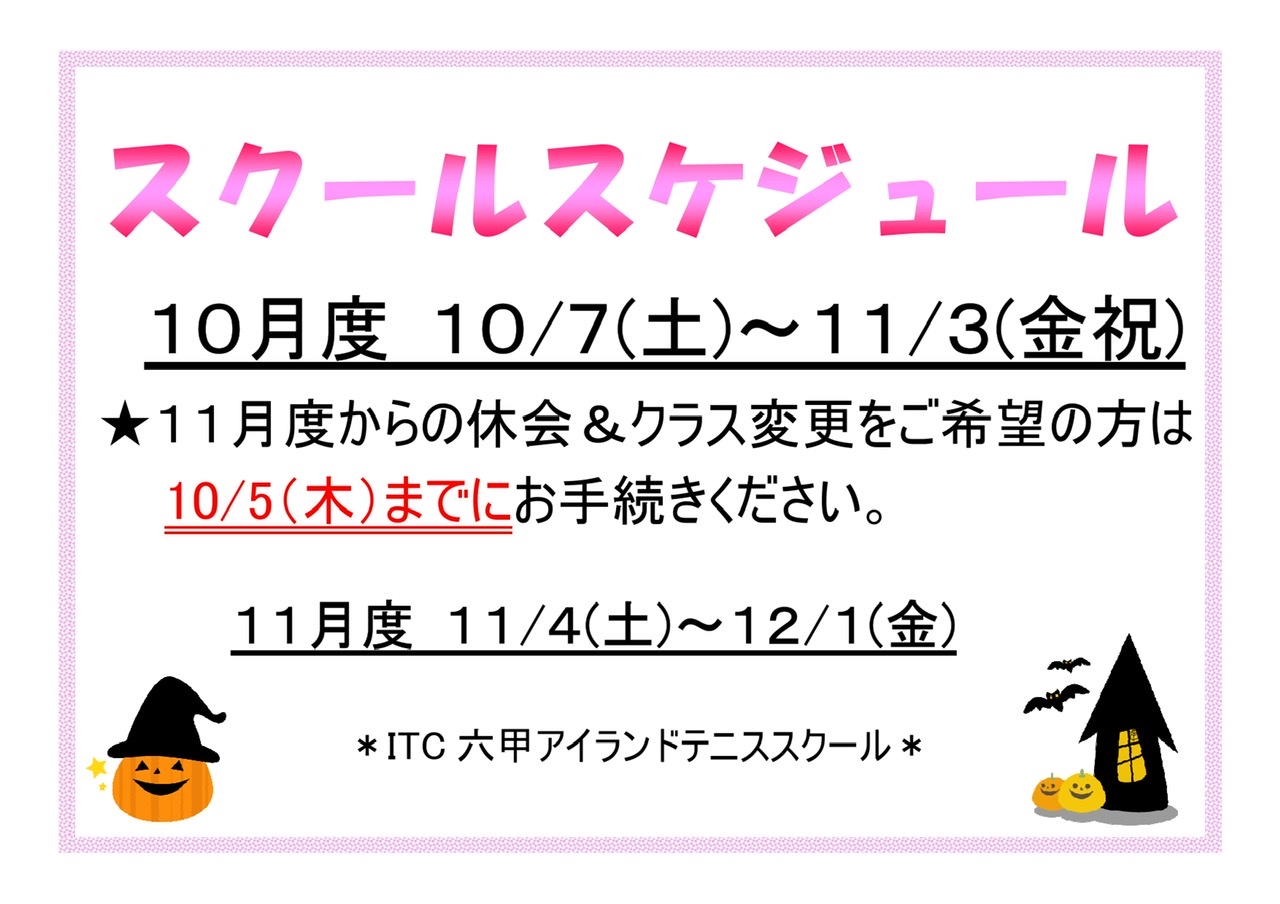 10月度スクールスケジュール🍁