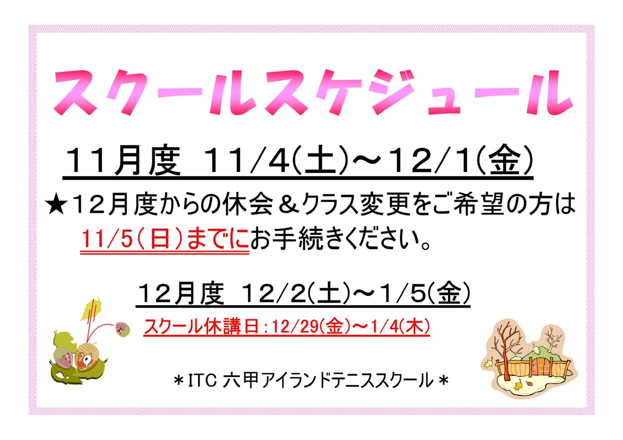 11月度も六甲アイランドテニスクールを宜しくお願いいたします