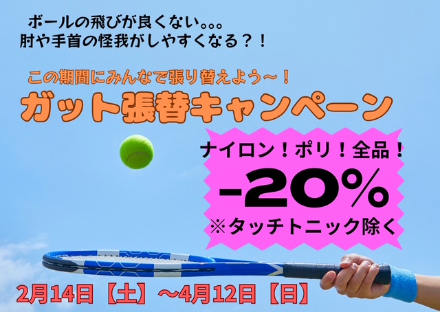 2月14日~4月12日までラケット&ガットキャンペーンが開催します!