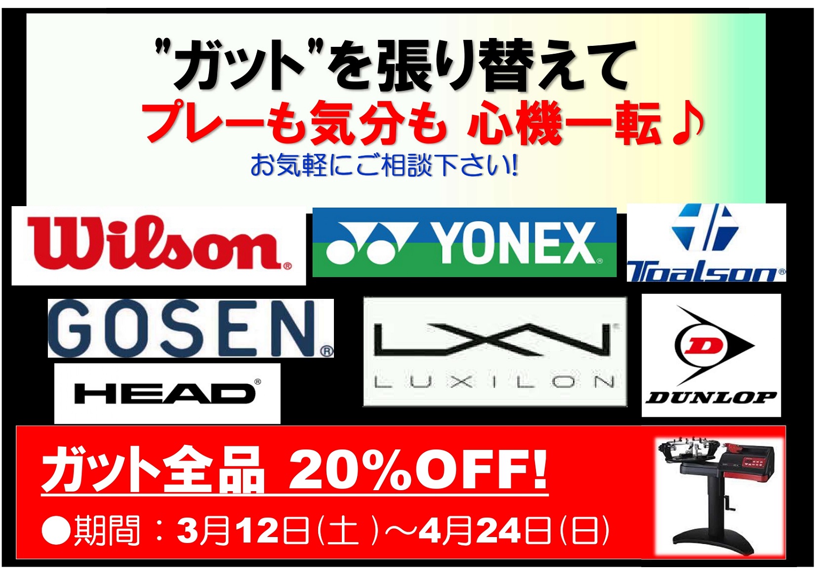 今年最初のラケット・ガットキャンペーンを開催します!!
