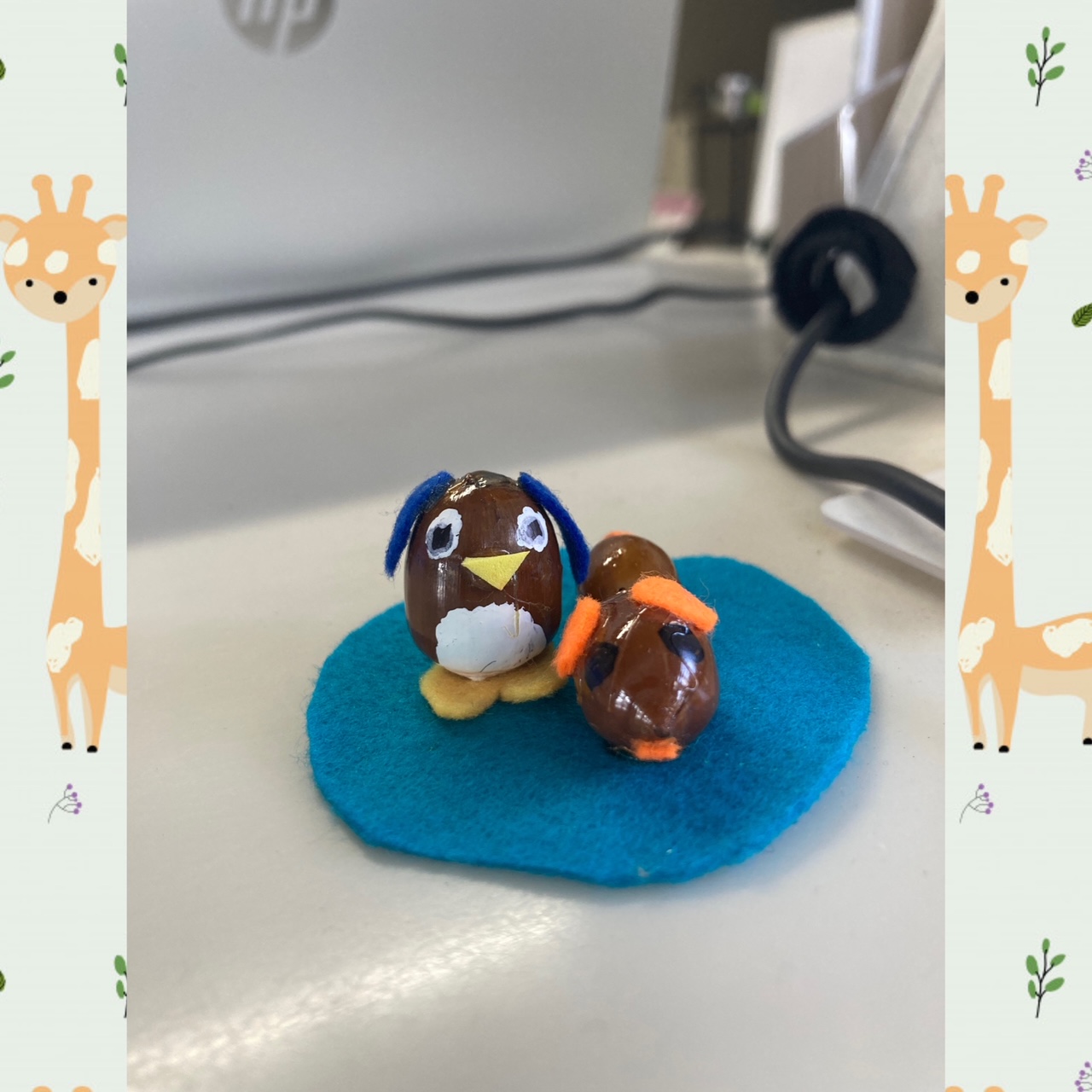 どんぐりで作ったペンギンと犬だそうです!