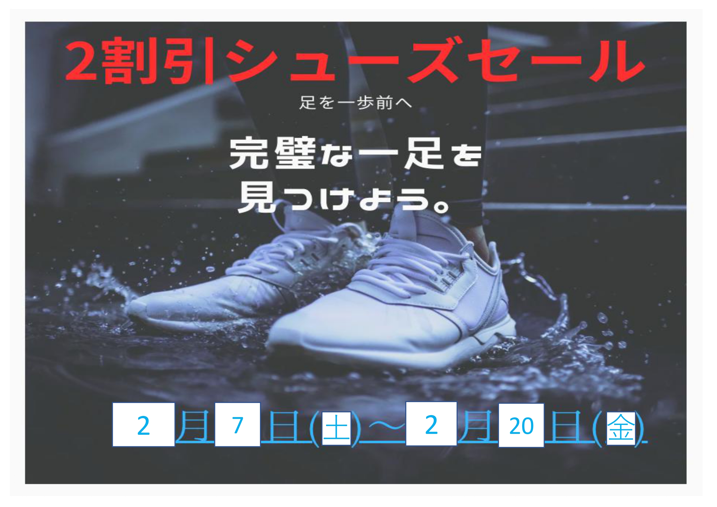 2/7(土)~2/20(金)でシューズキャンペーンを開催中です!!