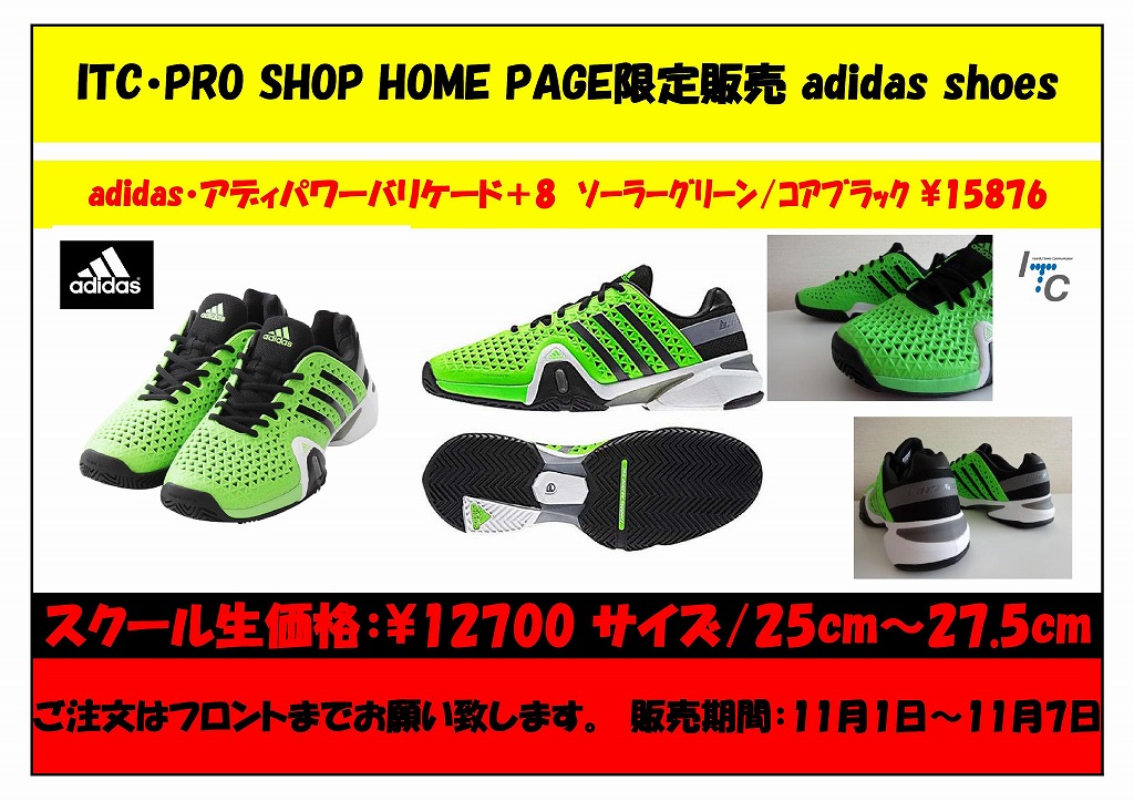 ホームページ限定の「アディダス・シューズ」のご注文を承ります。