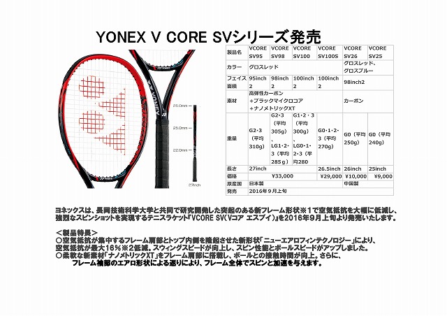 YONEXからNEWV COREシリーズ発売です。 (08/17)