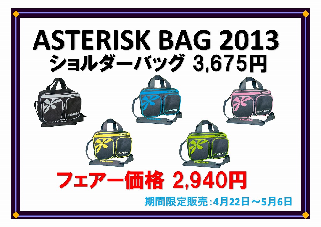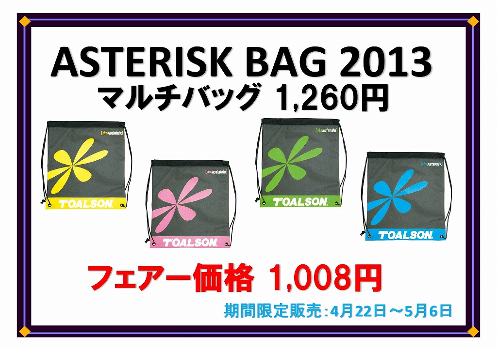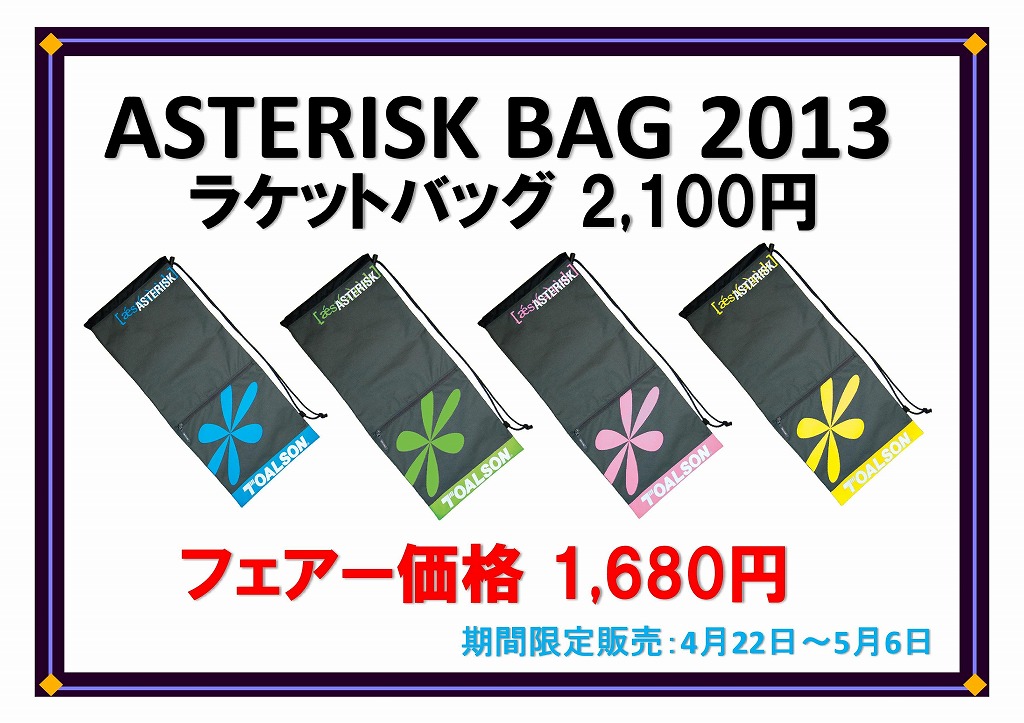 2013年新作アスタリスクバッグと今話題の厚手ソックスを期間限定で特別価格で販売致します。