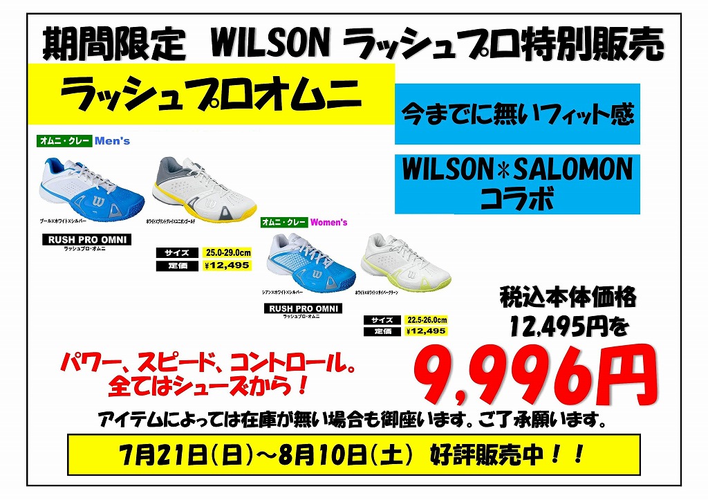 ウィルソン:ラッシュプロを「暑さに負けるな!テニス応援価格」で販売致します。