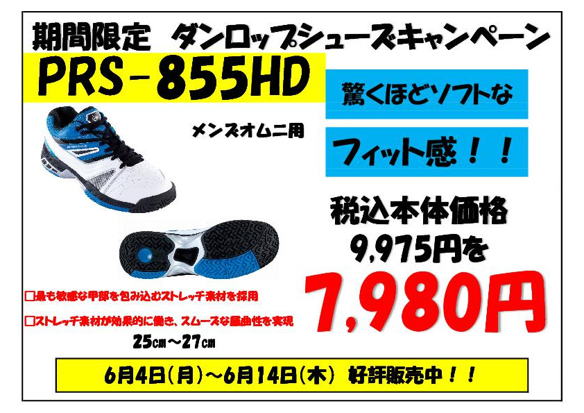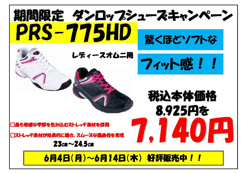 ITCテニススクールでは6月4日から6月14日までダンロップの新製品オムニコート用シューズを特別価格にて販売します。