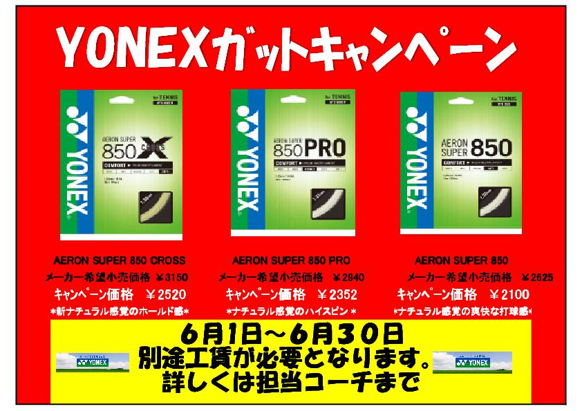ITCテニススクールでは6月1日~6月30日にて「YONEXガットキャンペーン」を開催致します。