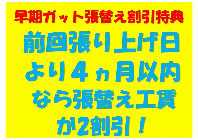 前回張替え日より4ヵ月以内でのガットが切れていない状態での張替えなら