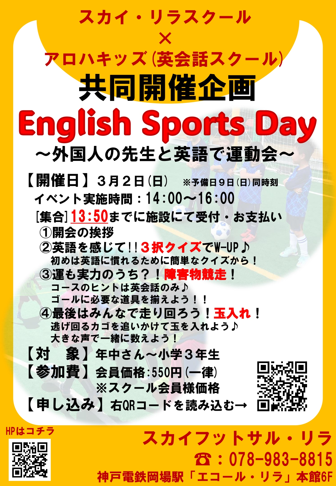 テニス・サッカースクールを運営しているスポーツの魅力を我々と、全く違う業態である英会話のスクール様と協力、意見交換を実施することで近隣の子ども達の成長・発育に対して、より良い環境を提供していくことが目的となっております。