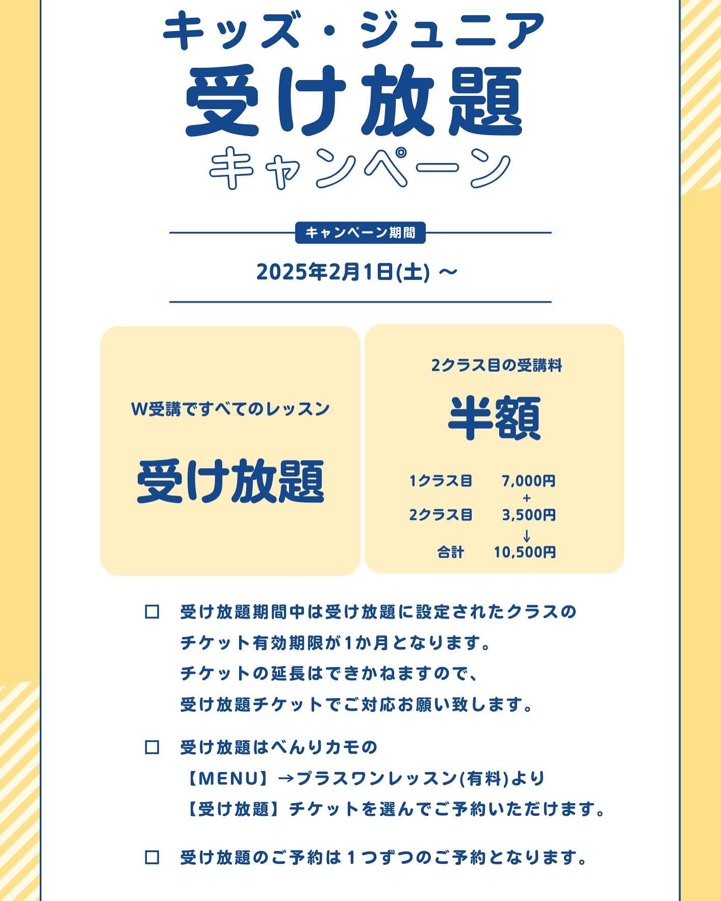 W受講で全てのレッスンが受け放題のキャンペーンを実施しております!