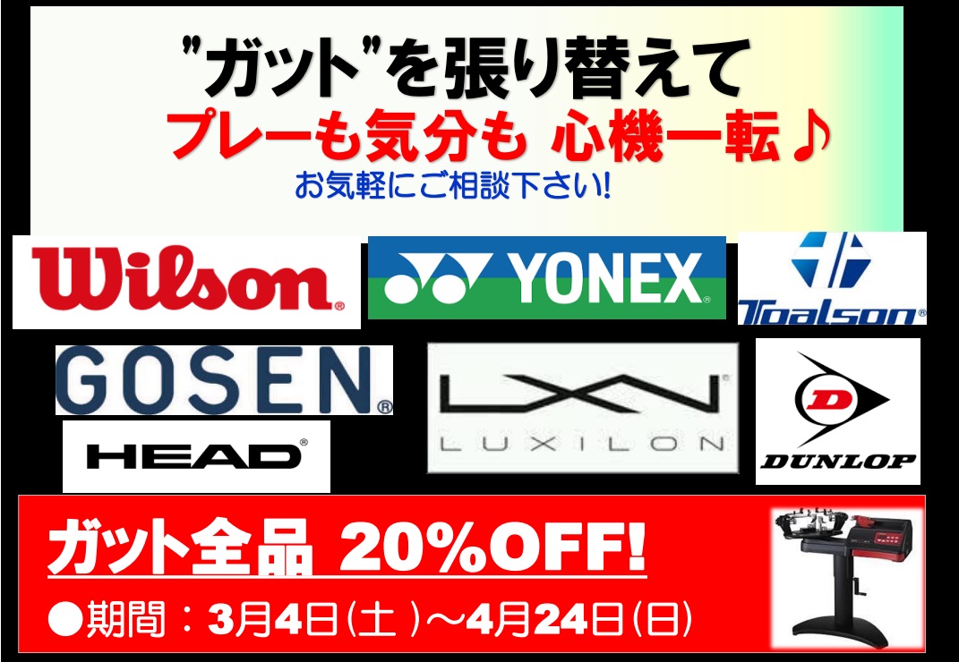 さて!そんな中皆さんはラケットのガットは交換されましたでしょうか?