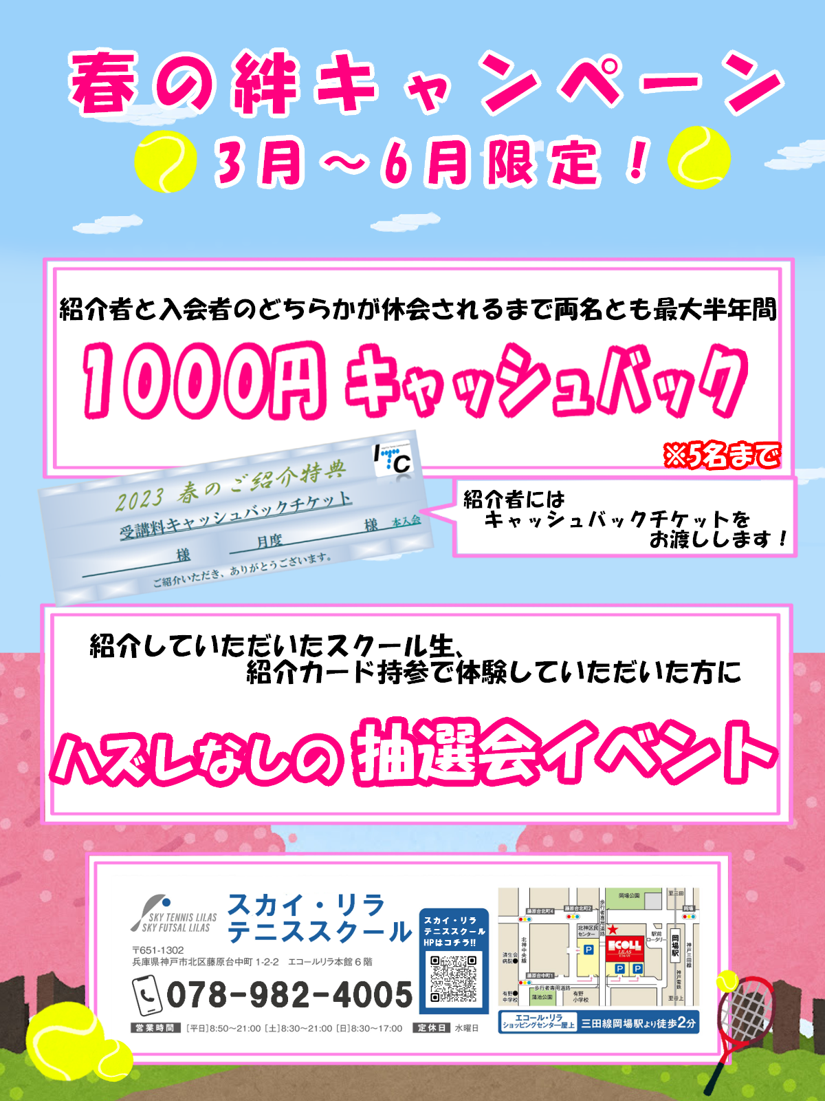 現在、スカイテニスリラでは「春の絆キャンペーン」を実施しております