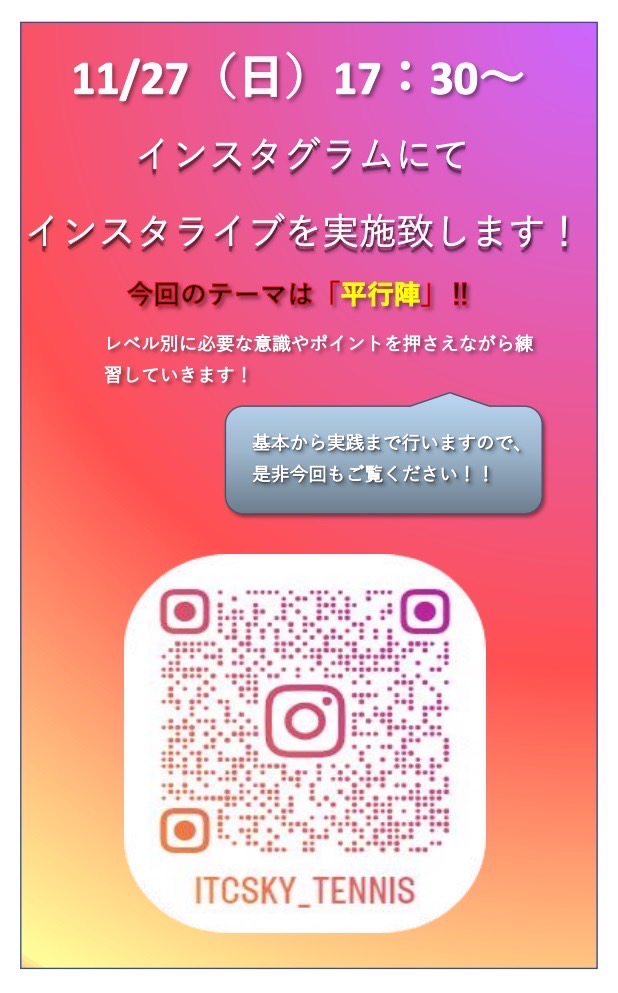 明日、11月27日 17時半より、インスタグラム内でライブ配信を行います!