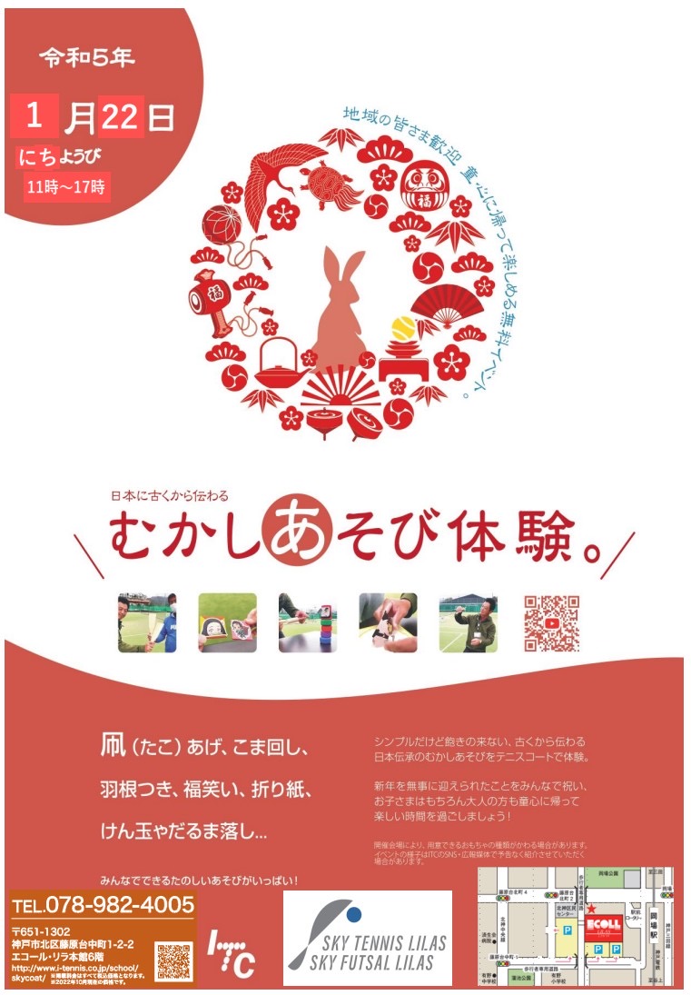 1月22日11時よりスカイテニスリラでむかし遊び体験を開催致します!