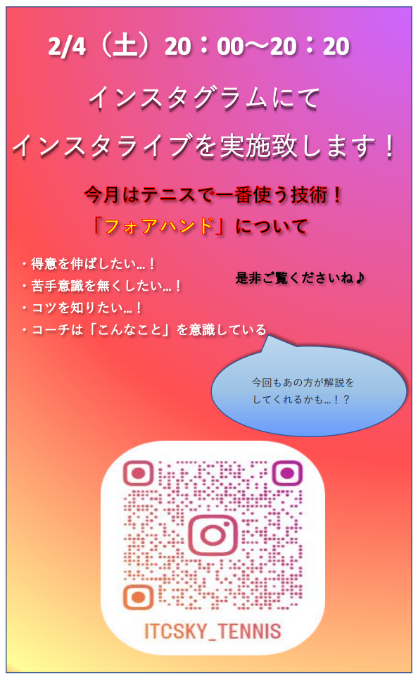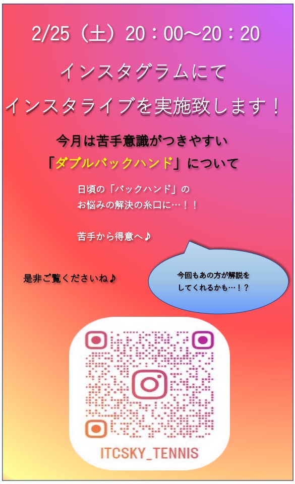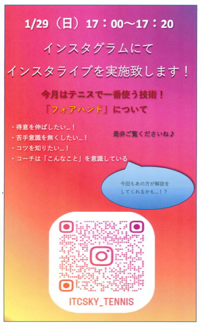 現在、ITCスカイテニスリラの「インスタグラムアカウント」にて、