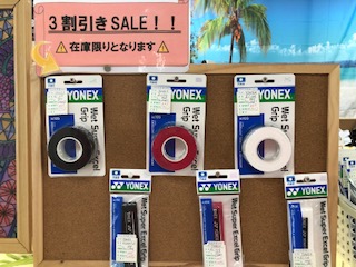 フロントに置いてありますグリップが3割引き対象となっておりますので