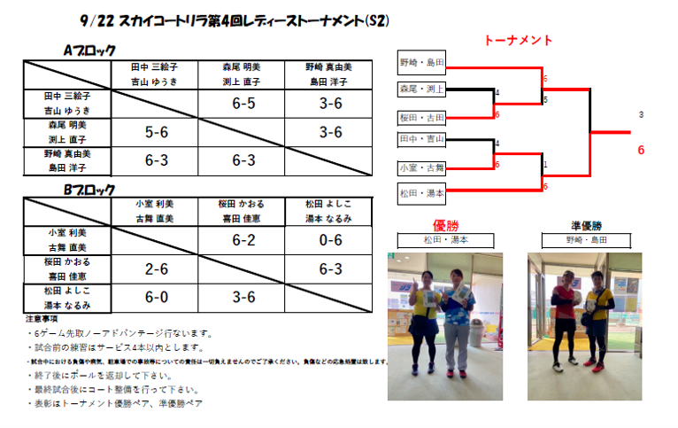 9月22日レディーストーナメント結果!