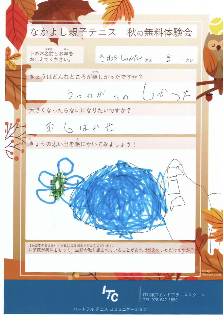 少し日が暮れて肌寒い中でしたが、元気にテニスをして下さいました