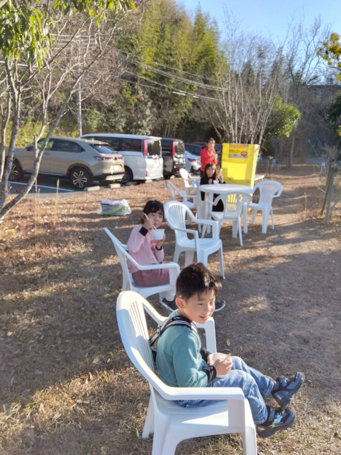 たくさん走って動いたあとは、みなさんであったか~いおぜんざいをいただきましたニヒル