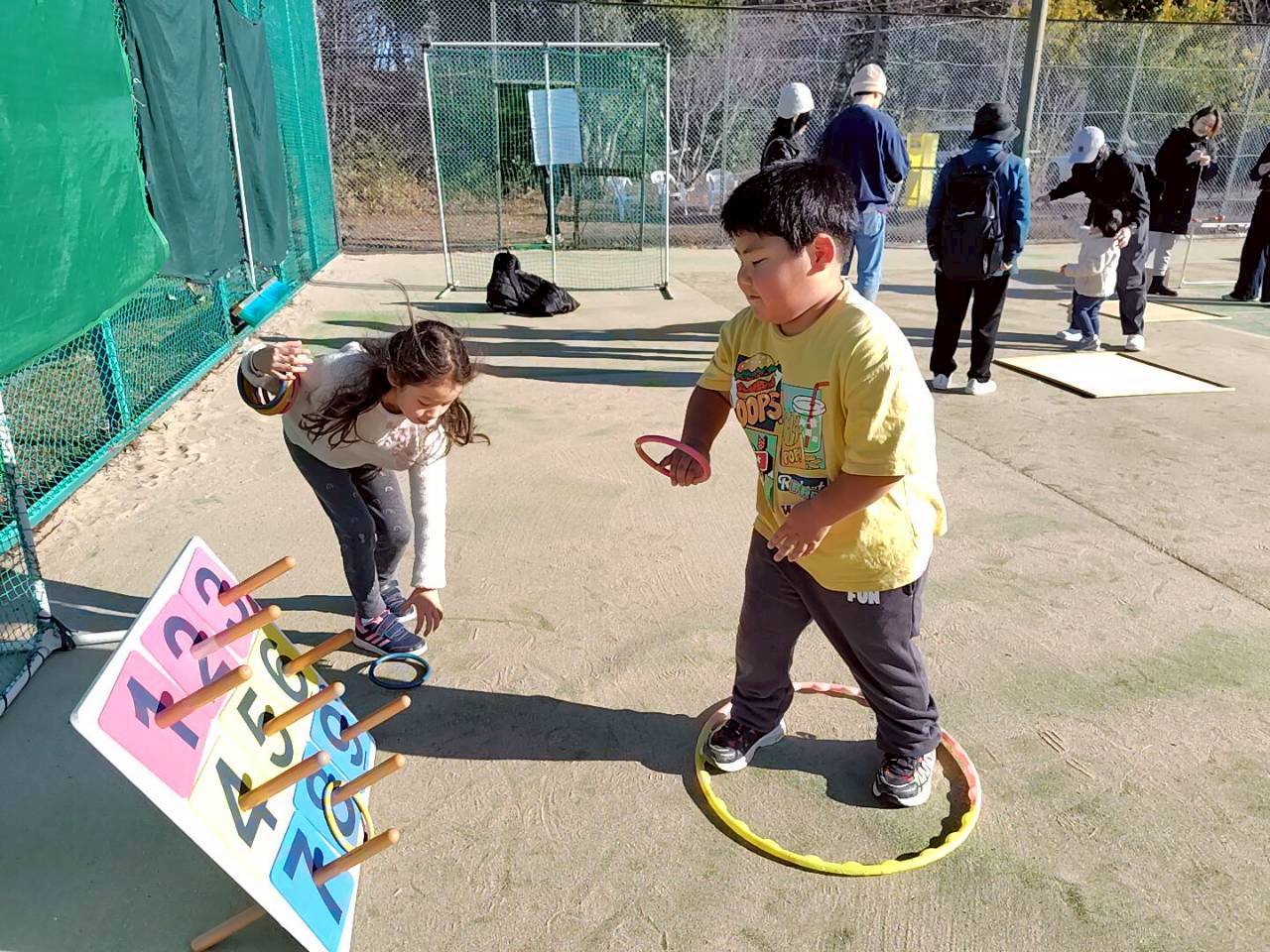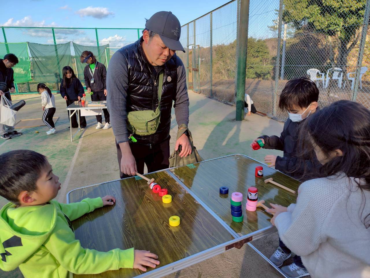 当日は、だるま落としや、羽根つき、