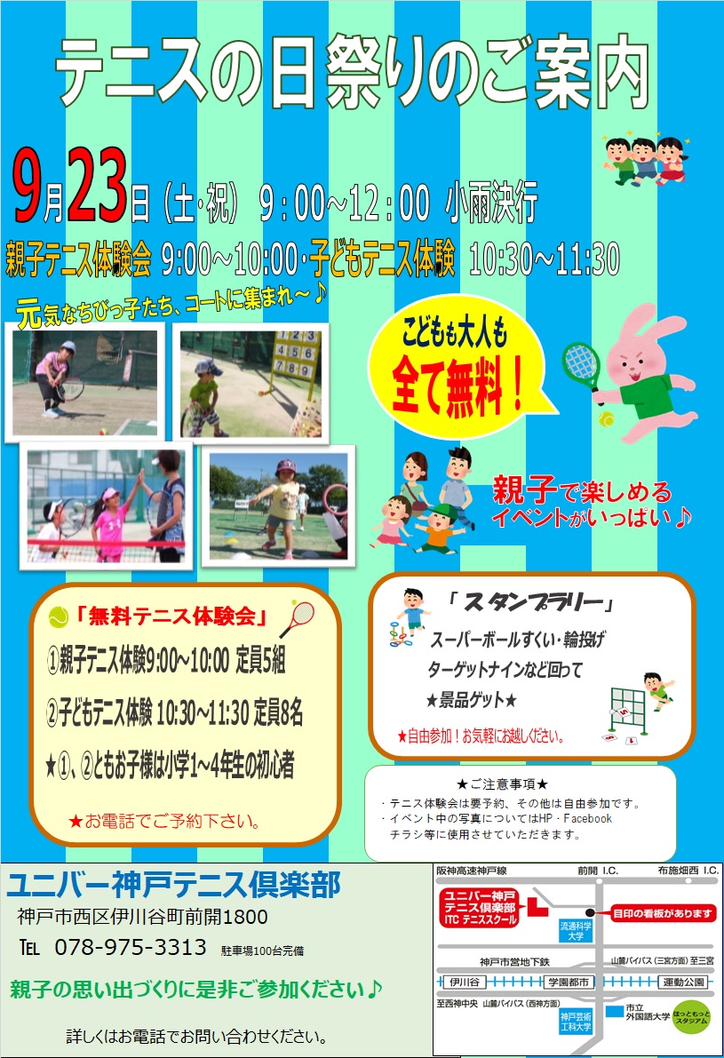 9/23(土祝)に「テニス祭り」を開催します。
