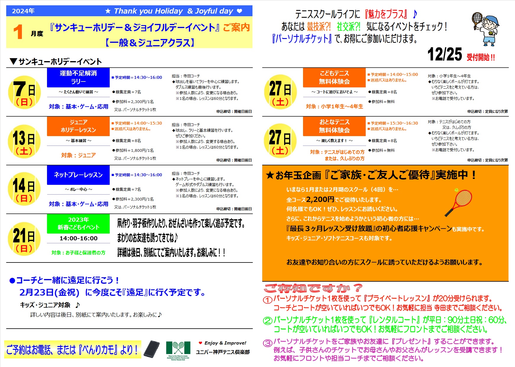 2024年2月の『クラス表』&『イベント』です。