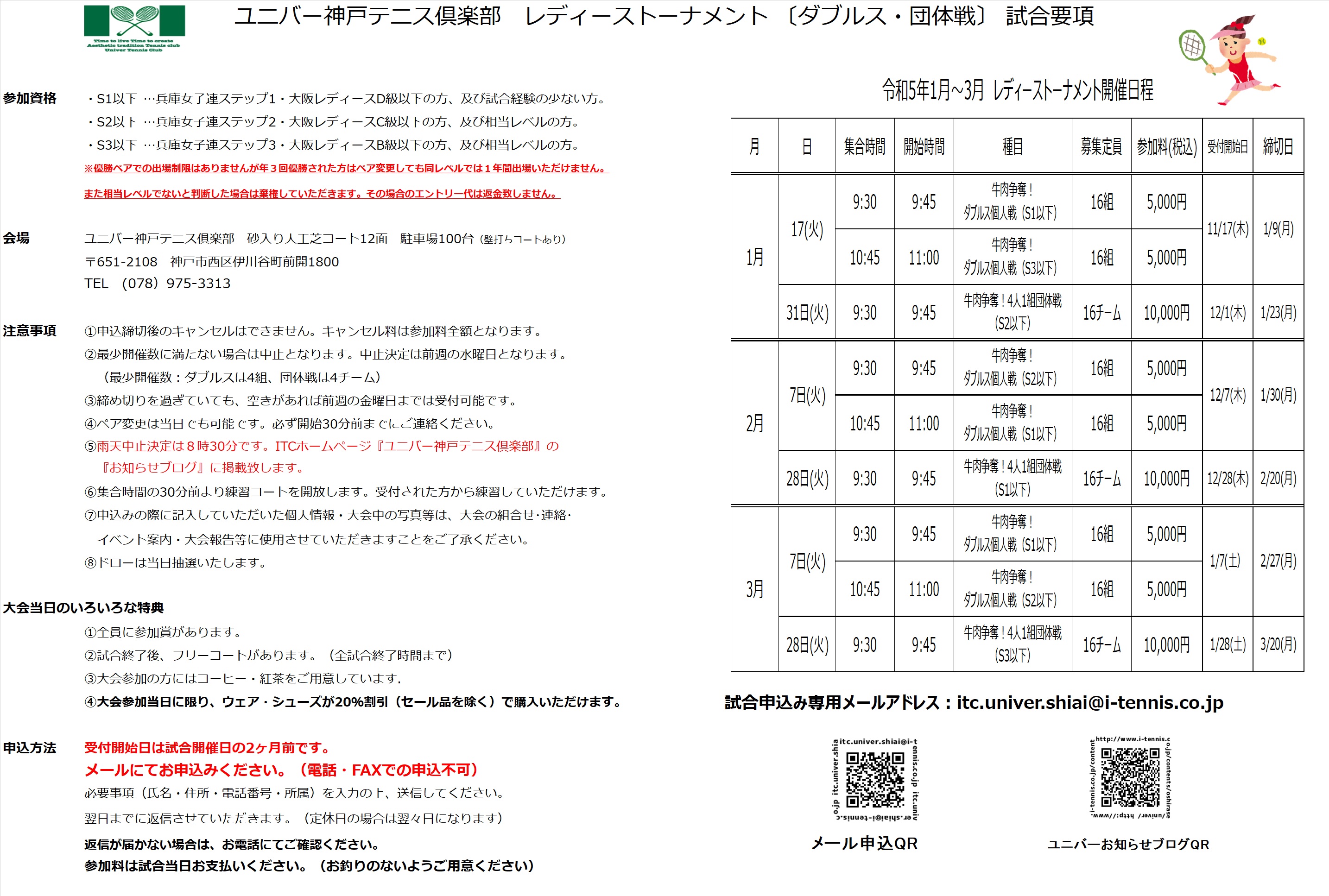 土日の女子ダブルスのエントリーは抽選申し込みとなっています