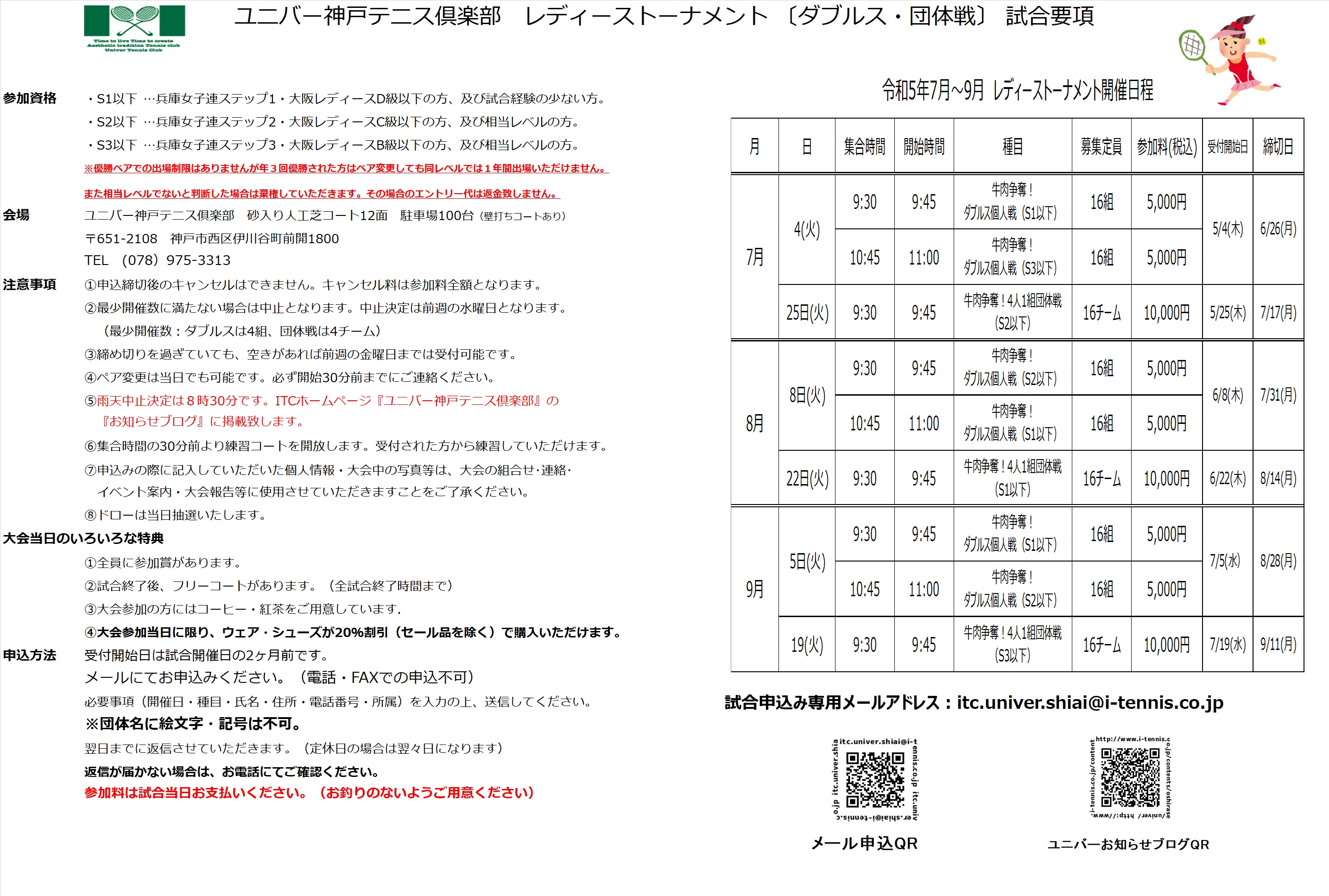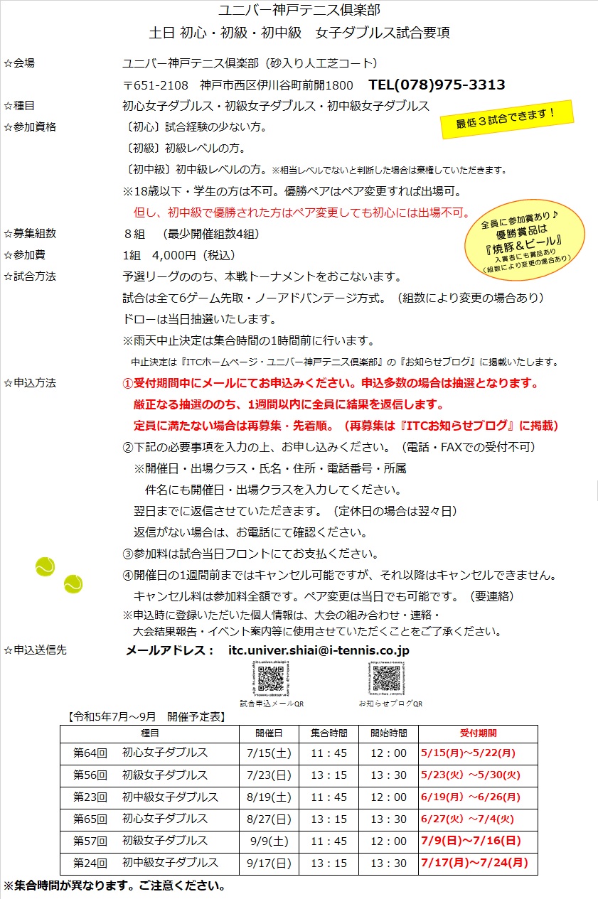 土日の女子ダブルスのエントリーは抽選申し込みとなっています