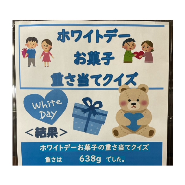 ホワイトデイチョコ重さ当てクイズの正解発表です✨