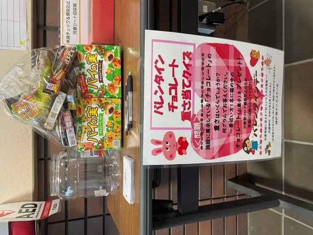 本日より、バレンタインチョコ重さ当てクイズ開催です