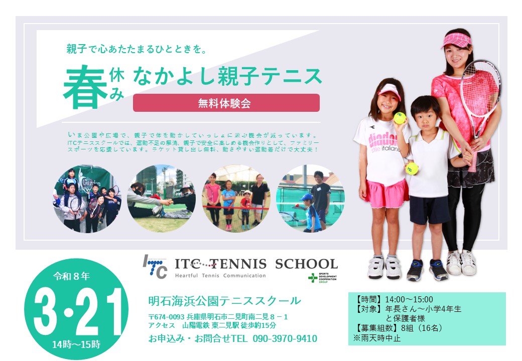 親子テニスレッスンを開催いたします。 奮ってご参加ください。