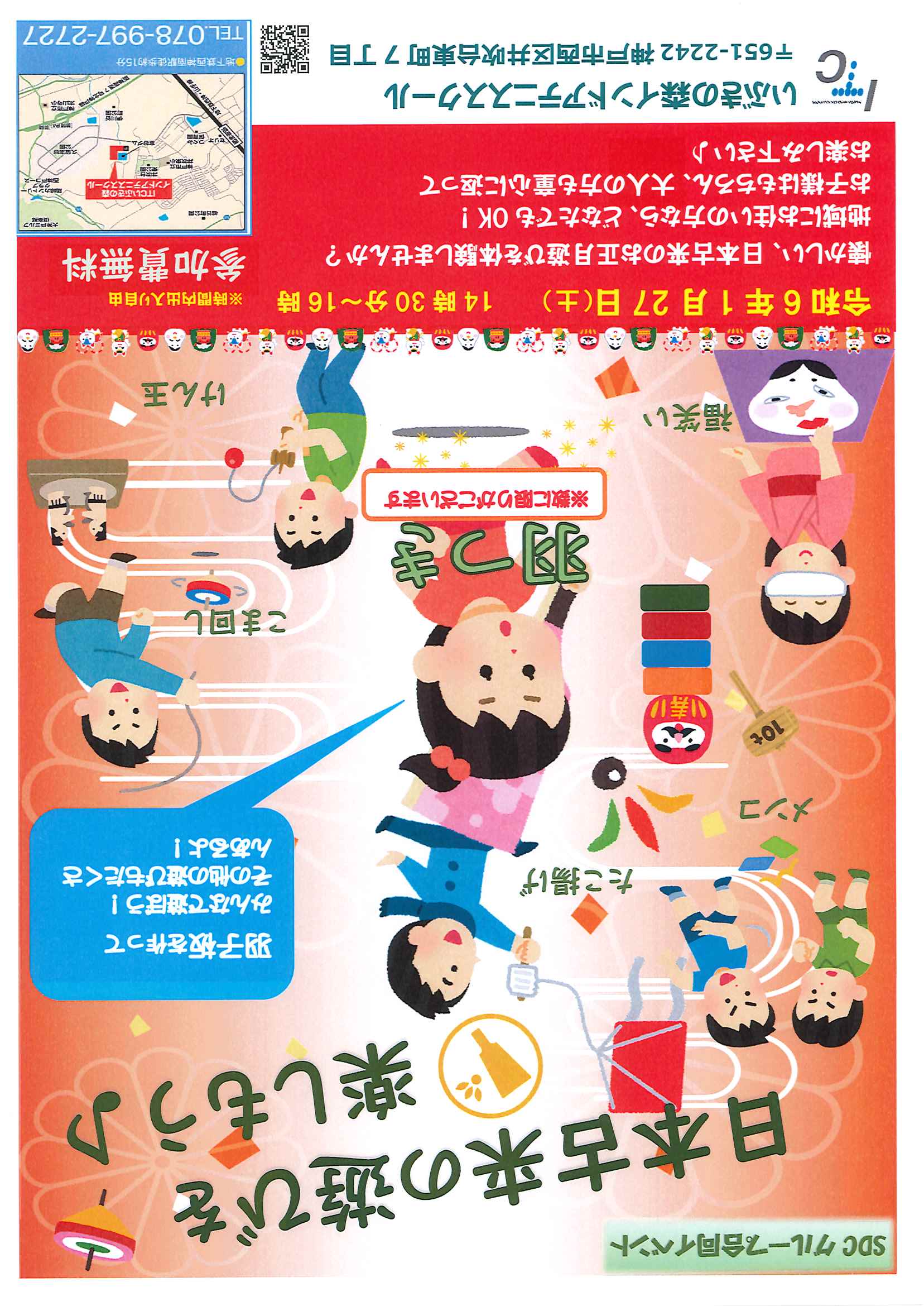 羽子板、福笑い、めんこ、けん玉、コマ回しが楽しめます