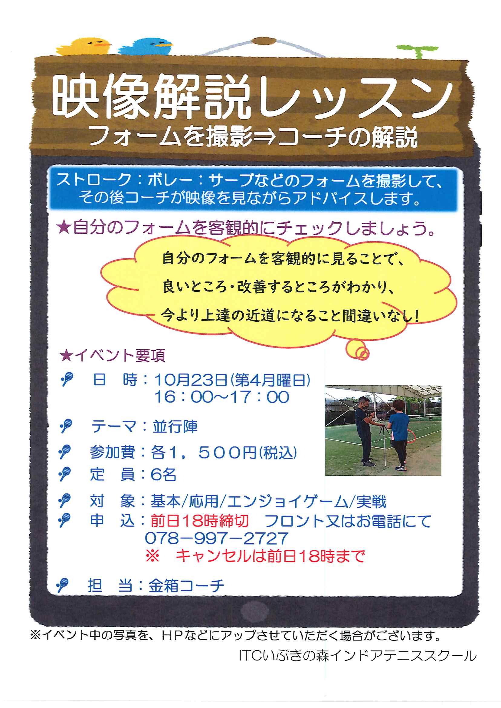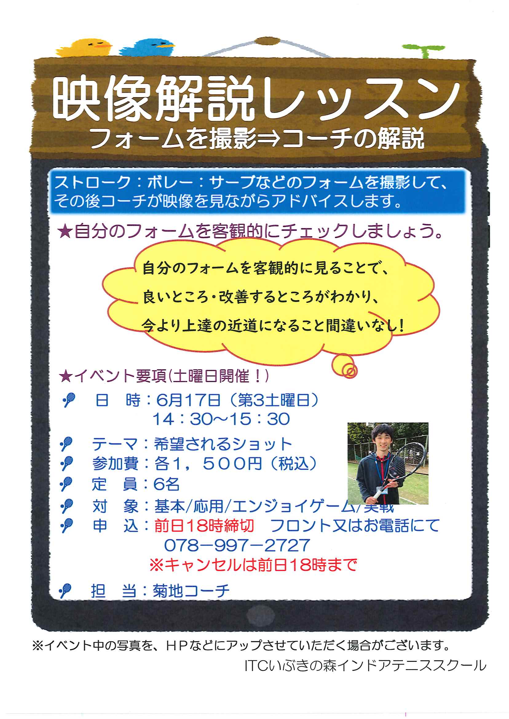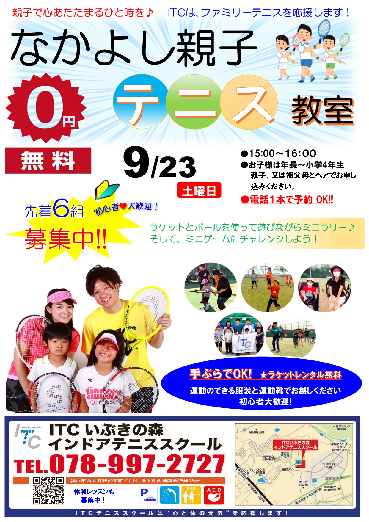 ★申込み:いぶきの森テニススクール TEL 078-997-2727