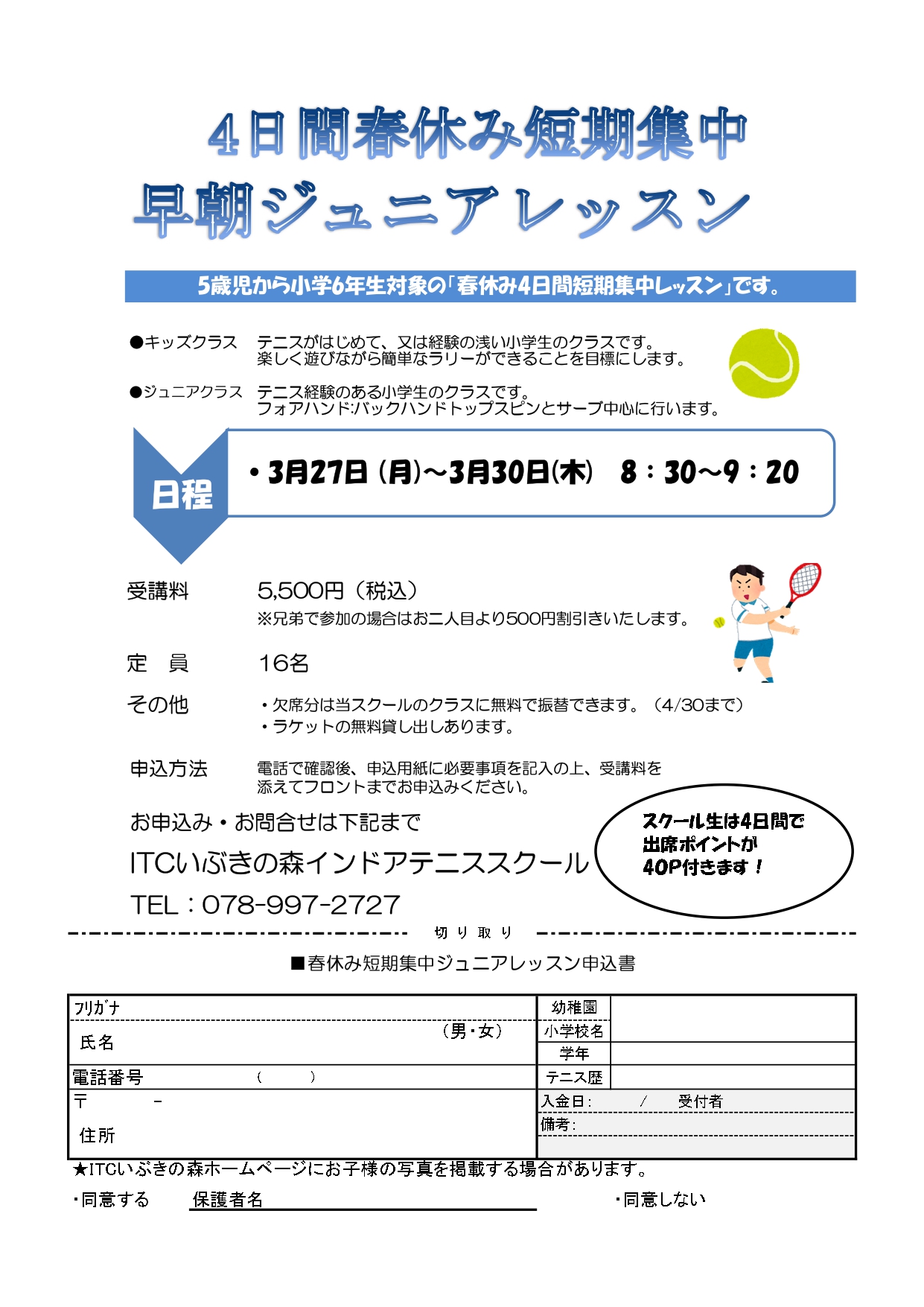 また、3月27日~30日:8時30分~9時20分:春の短期早朝レッスンもまだまだ募集中です