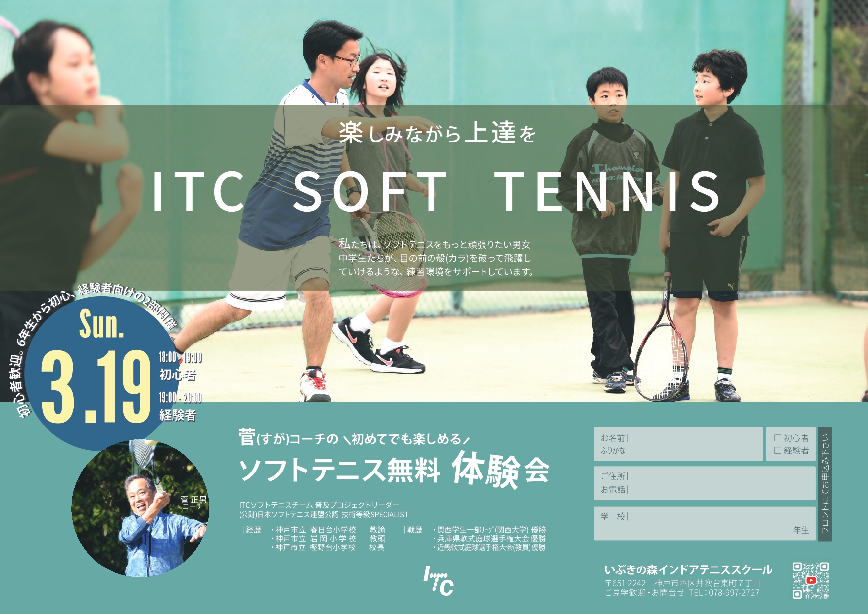 3月25日~4月6日までの間でソフトテニス短期教室を行います