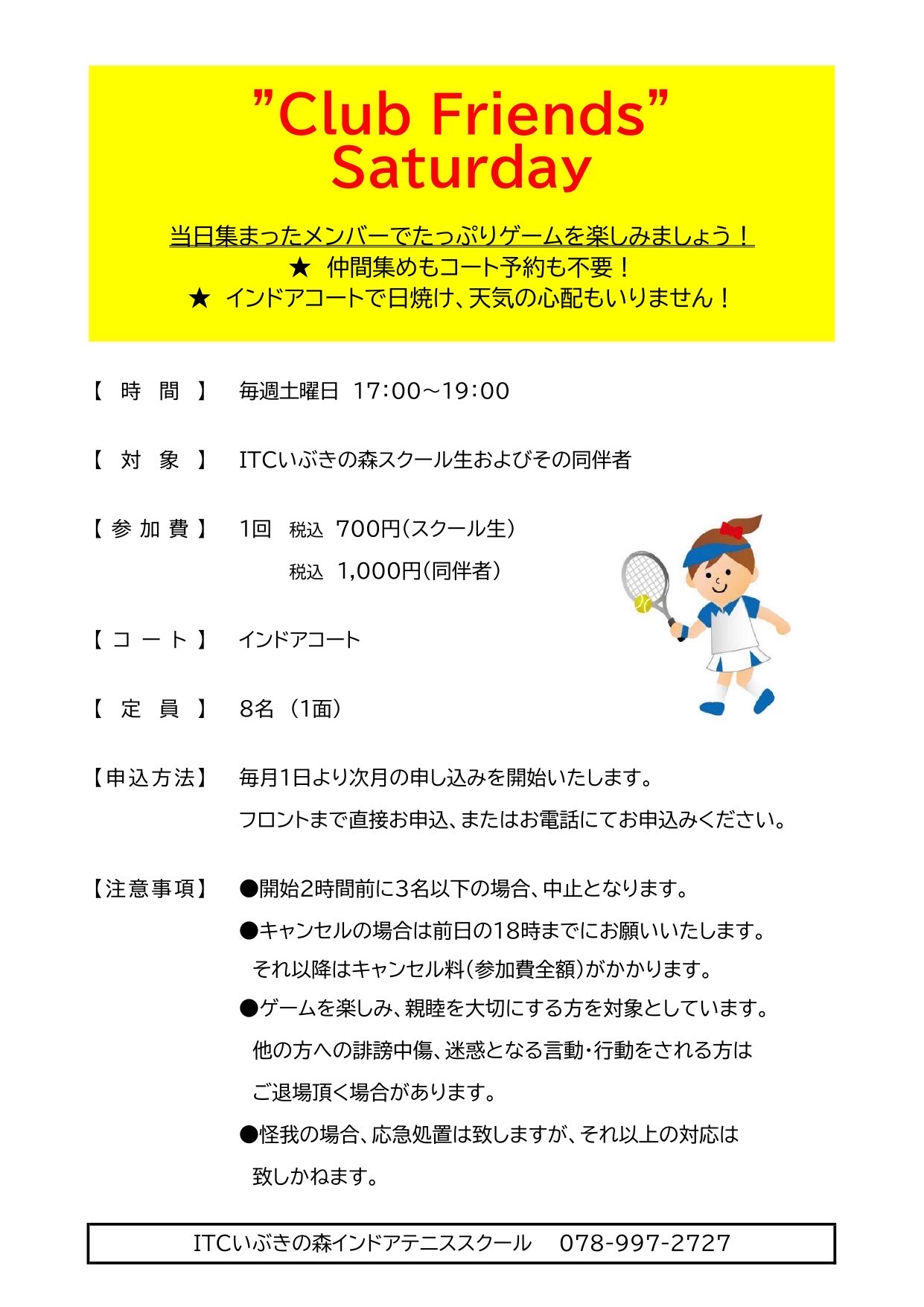 皆様にご好評いただいているClubFriendsを土曜日にも開催致します